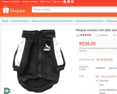 ROUPA CASUAL COM ZÍPER PARA PET - TAMANHO M